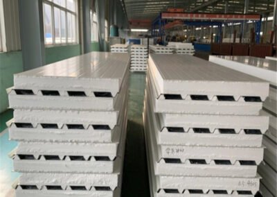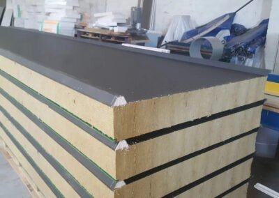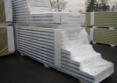 - Міцність та стабільність: Сендвіч-панелі з наповнювачами з мінеральної вати та пінополістиролу забезпечують міцність та стабільність конструкції, що є важливим фактором для довговічності та надійності будівель.